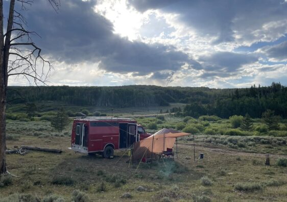 We traveled as far as you can go on the forest road. On our way back we spotted a campsite that we wanted to stay at for the night. It’s right next to the water and surrounded by small Aspen trees.