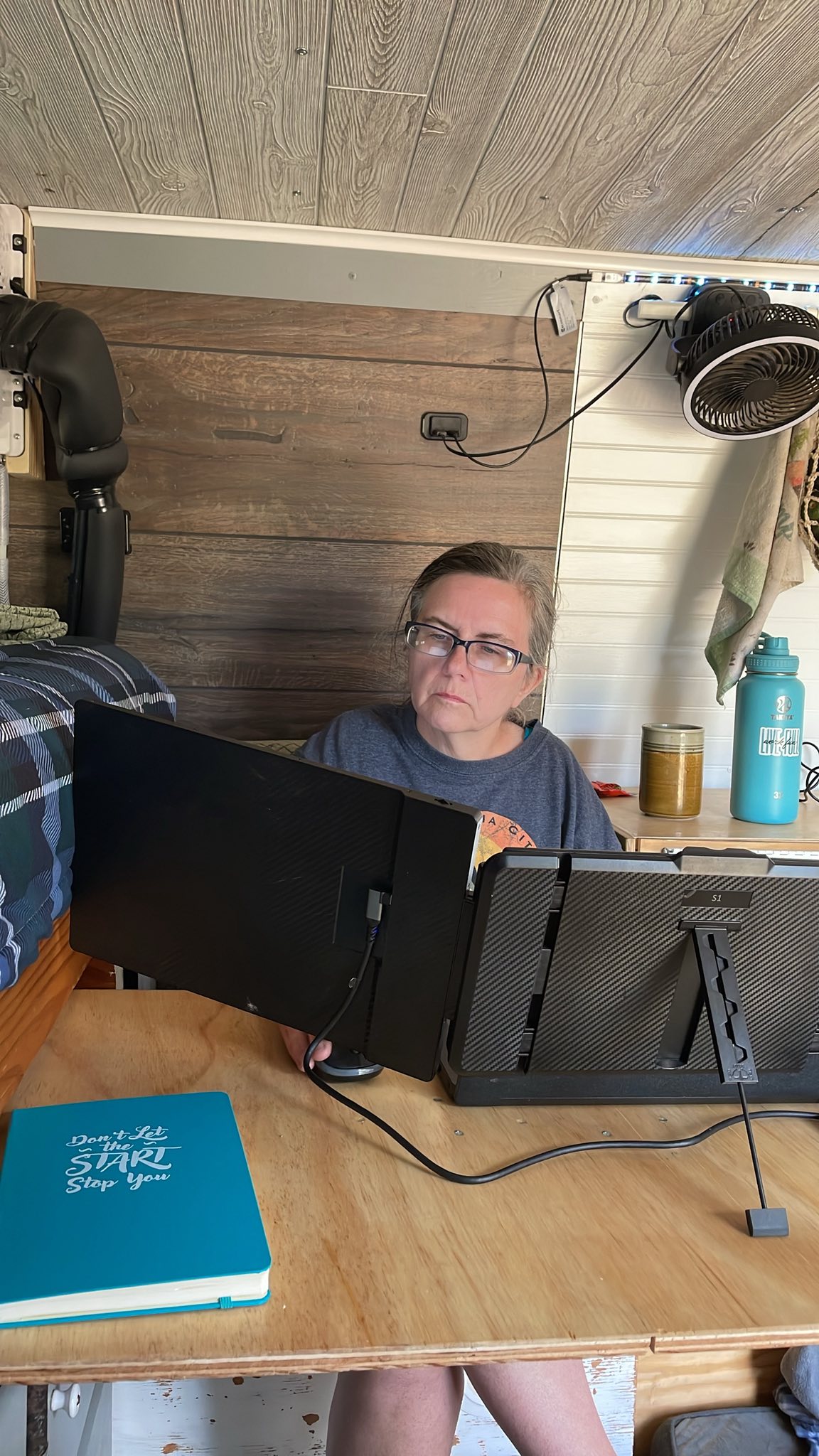 After dinner, we walked the dogs one more time around camp. Gayla returned to the computer for a bit, while I ended the day digging into more E-Bike research. There’s a lot to learn—but the idea is growing on me.