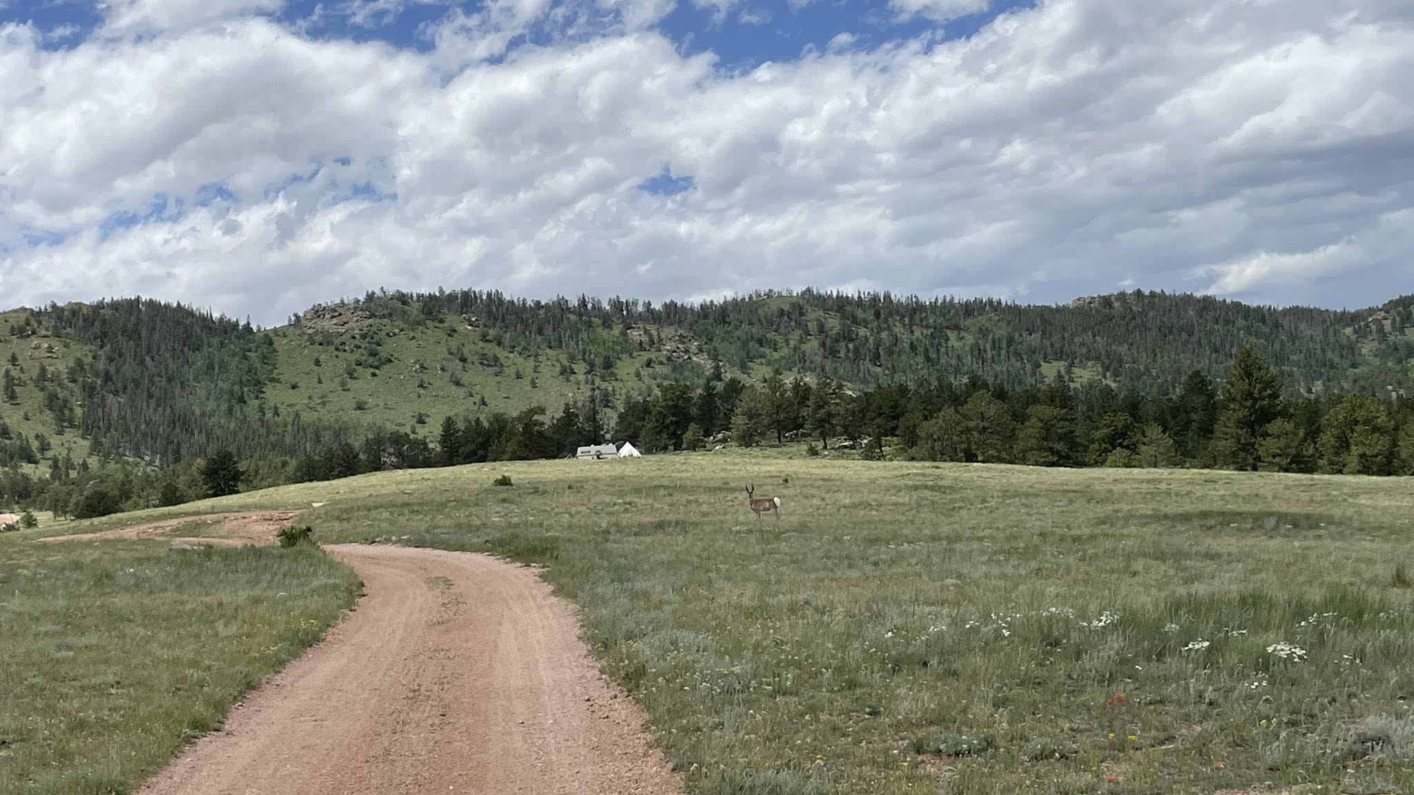 Eventually, I got stir-crazy. We laced up our boots and went on a nice 1.75-mile walk around the area. The sky was wide and blue, and on our way back, we caught sight of an antelope trotting in the distance—graceful and alert.