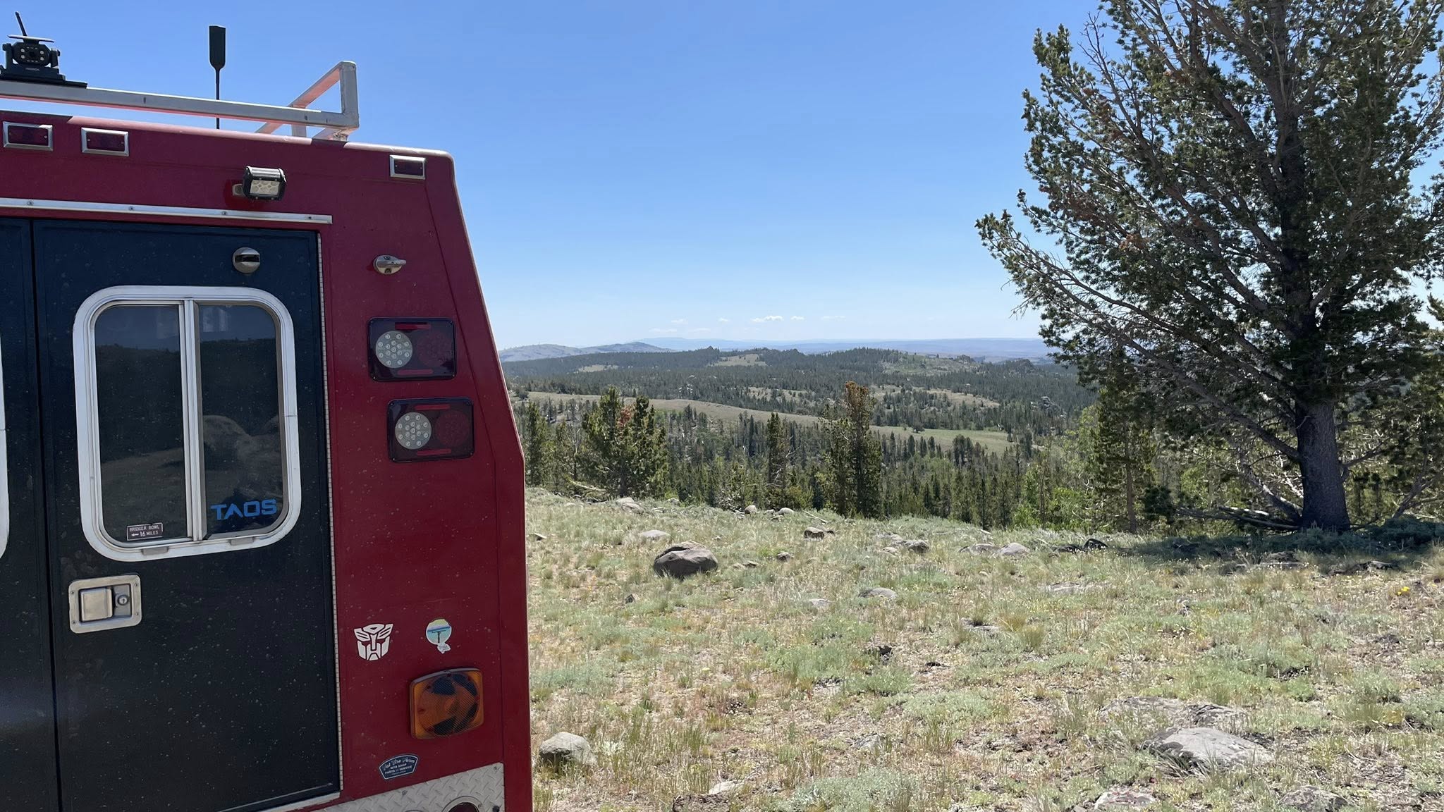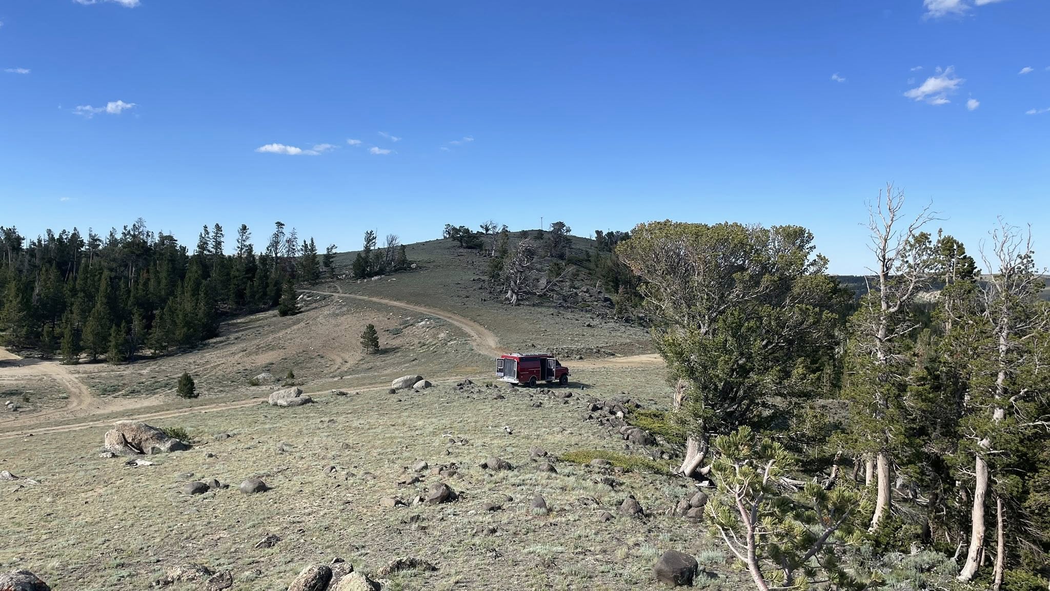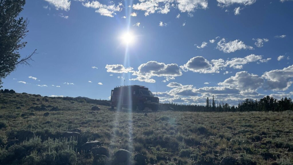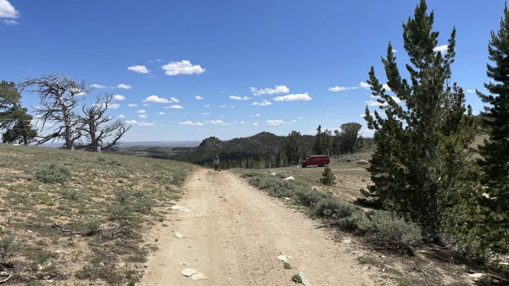 We let ourselves sleep in a little this morning, knowing it would be a slower travel day. After a peaceful coffee in the cool mountain air, we slowly got Clifford ready to roll. By 9:19 AM, we were pulling out of camp and heading south down Louis Lake Road.