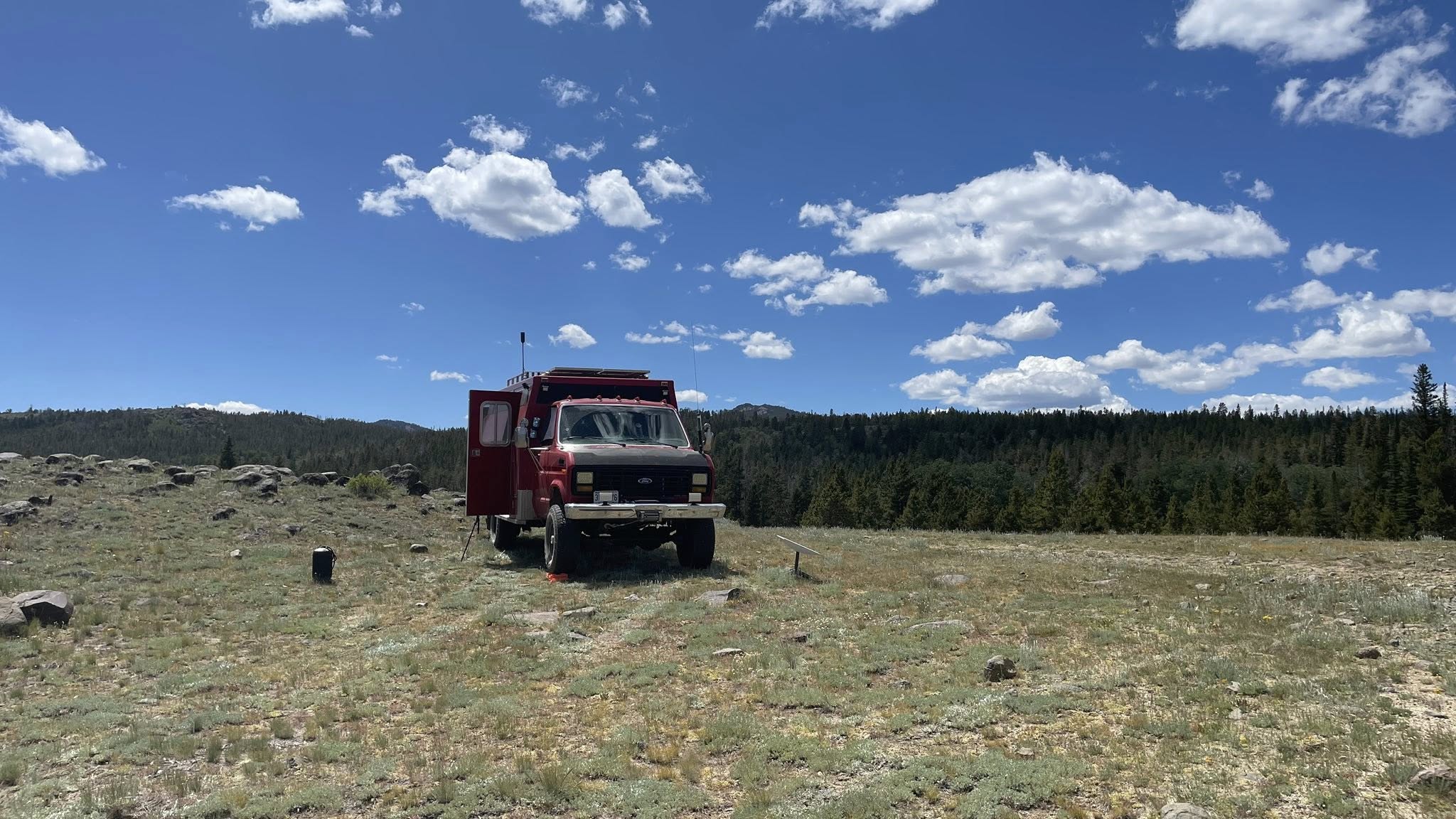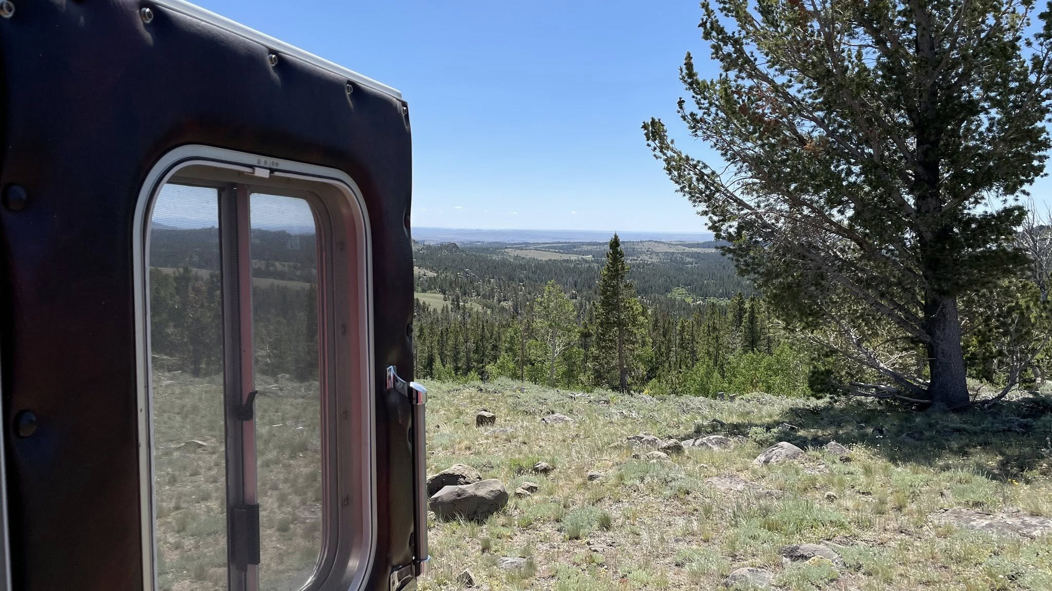 Eventually, we pulled into Grannier Meadows for a short break. There were a few campsites available, but we decided to keep moving. Clifford climbed to 9,022 feet on Forest Road 309, and that’s where we decided to settle in for the next two nights. Our new home has an incredible front-door view looking straight out over South Pass—just breathtaking.