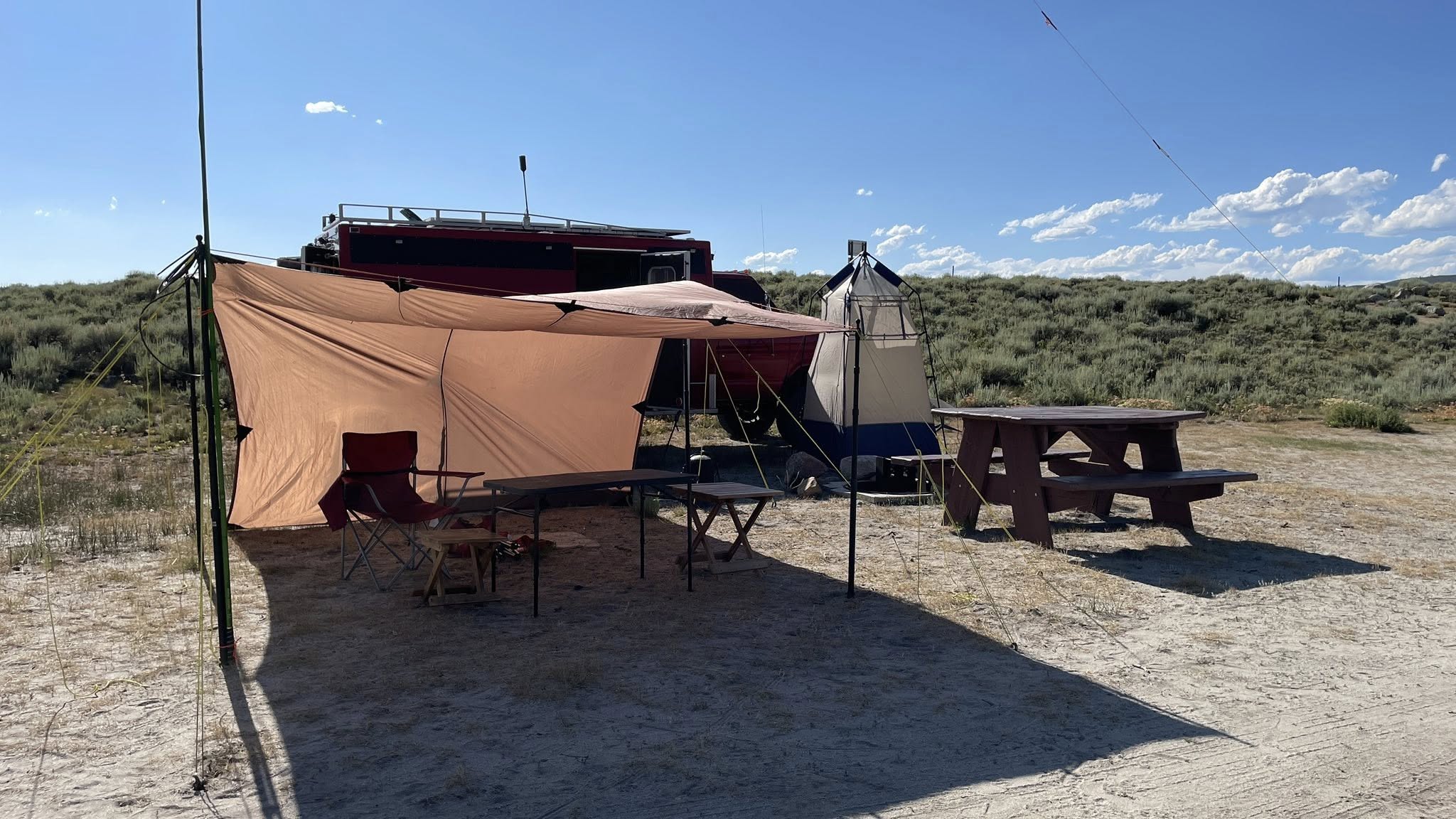 Later in the morning, we set up our cooking station outside under the shelter. I grilled up some tender sirloin steaks and paired mine with a perfectly ripe avocado. Gayla handled the dishes afterward, and I took over drying duties—teamwork in action.