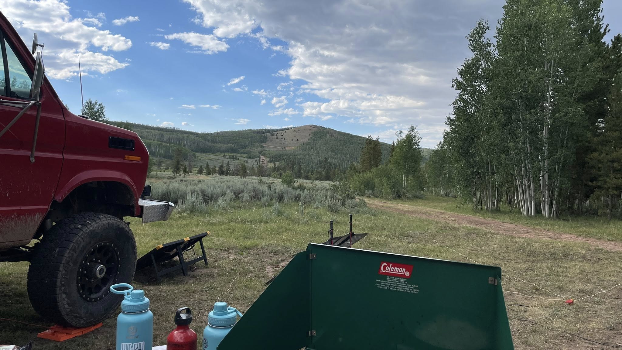 Brunch/lunch was a repeat of the last couple days—why mess with a good thing? While cooking, we spotted a Sage Grouse with her chicks roaming nearby. A real treat to see.
