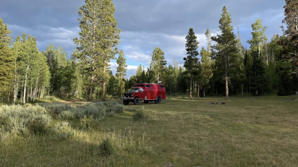 Last night around 9 PM, we took the dogs for a short walk around camp. Their noses were working overtime with all the new scents in the air. After we settled back in, Gayla prepped for her meetings coming up tomorrow while I spent some time digging into research on old Ford diesels. Just a quiet, productive evening in the rig.