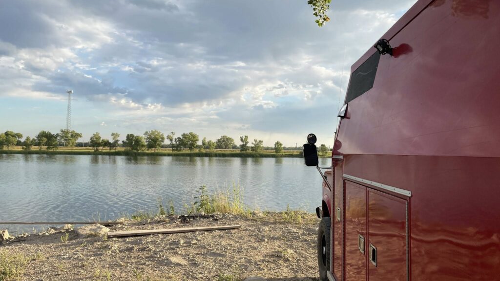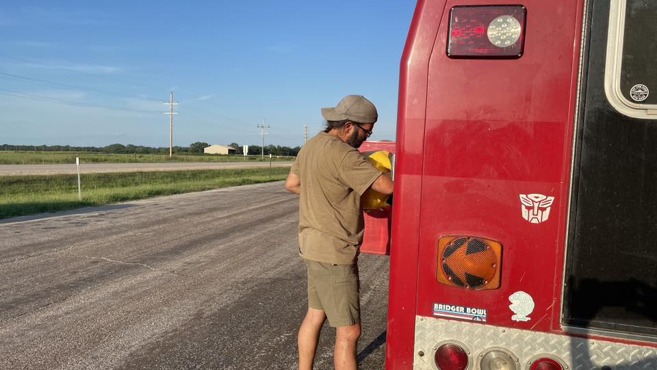 Clifford needed a drink, so we stopped in Kearney, Nebraska to splash in 30 gallons of fuel. He gave us 9.45 mpg this stretch—definitely not his best. We figured out why: I’d been running about 10 mph faster than usual. Turns out Clifford really likes cruising at 60 mph.