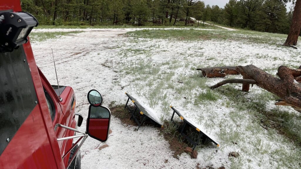 While catching up with some folks back home in Missouri on the phone, the skies darkened ominously. A quick check of the radar confirmed what was coming: rain and lightning moving into our area. Soon enough, the rain began — and then the hail.
