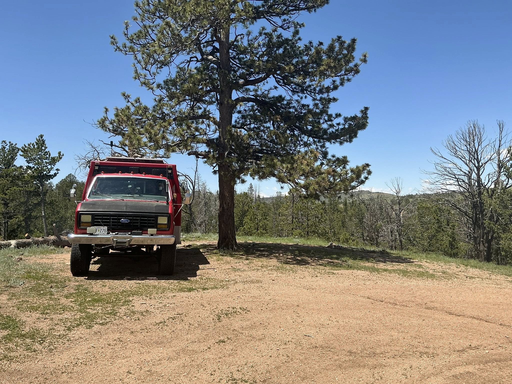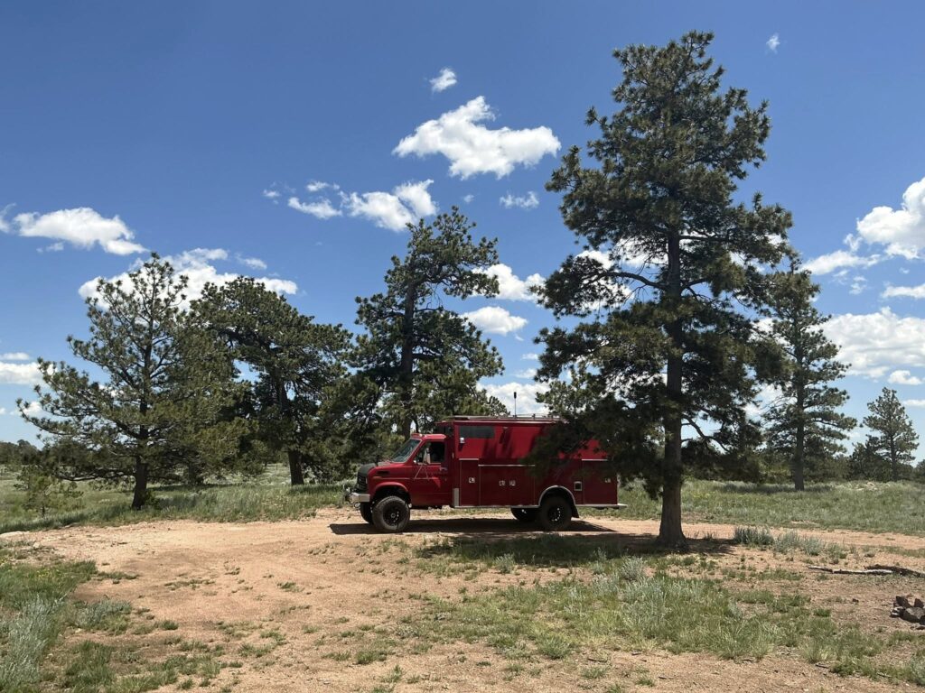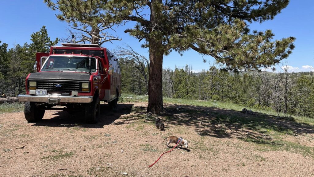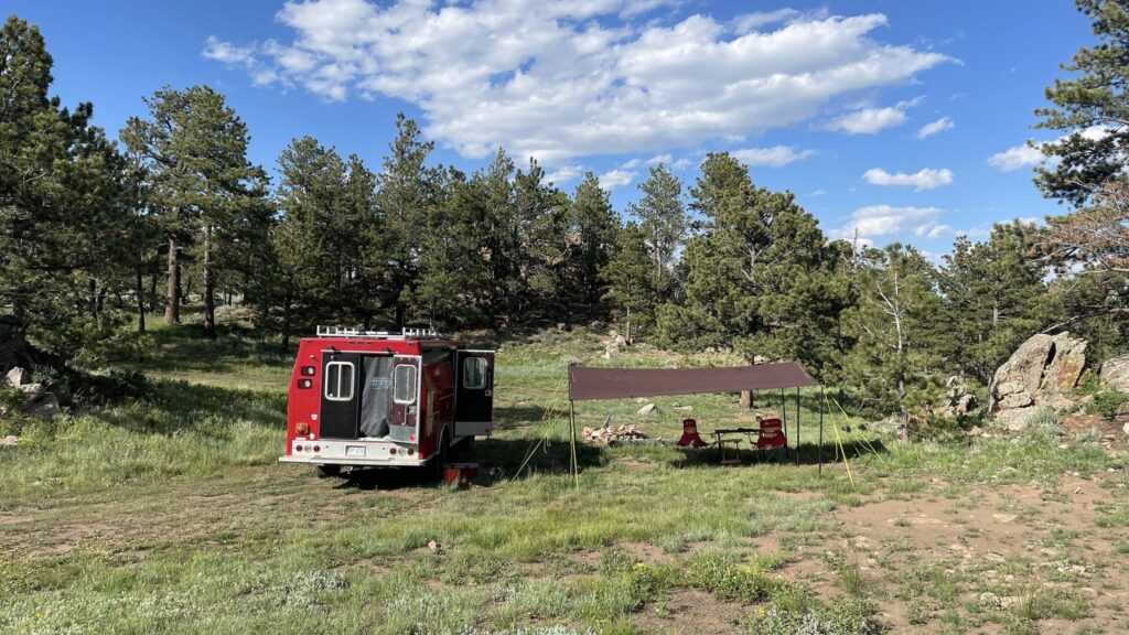 By 3 PM, we found a promising campsite at the end of a forest road. It was quiet, tucked away, and had three fire rings — clearly a favorite stop for other campers in the past. There was also a nice, level spot to park. Perfect.
